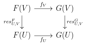 for each U open in X, such that if U is a subset of V, then the following commutes: