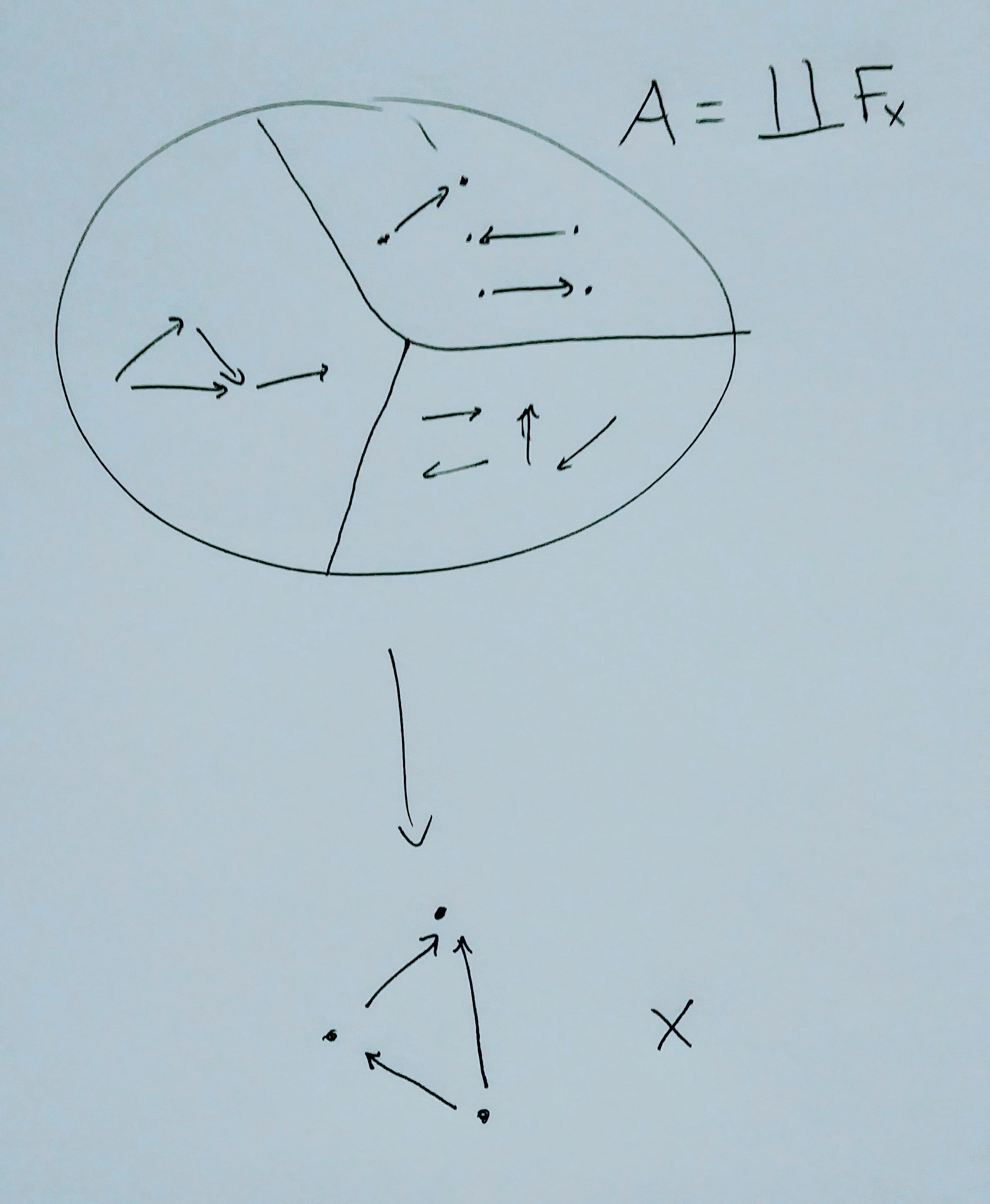 Oops. There’s something clearly missing from this picture. This picture of the county doesn’t contain any info about the highways! How can we retain the information about the highways in the county map, where the only things we can draw are places and streets between them? You can draw in a new street for everywhere you can get between cities that involves taking a highway. Now it’s time for the definition of the Grothendieck construction.