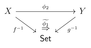 I’ll just describe the inverse of this functor and move on. Given an object of the arrow category of Set, i.e. a function , we can define a functor